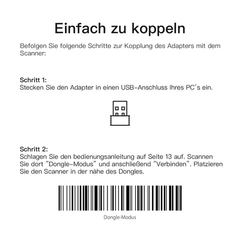 -Vergewissern Sie sich, dass Ihr Scanner über eine Drahtlos-Funktion verfügt. Probieren Sie den Scanner mit verschiedenen Bluetooth-Geräten zu koppeln, um zu sehen, ob die Bluetooth-Funktion mit einem anderen Endgerät funktioniert. Laden Sie den Scanner 3-4 Stunden lang auf und prüfen Sie, ob die LED-Leuchte leuchtet.